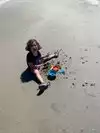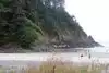 This stop right off of highway 101 north of Florence, OR is well worth a visit. Take the steep lighthouse trail up behind the lighthouse for magnificent views. The beach has a creek running into it, and a mix of cobbles and sand.
