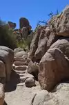 The trail is easy with some steps up and down along the way. Good place for some of the plants to be shielded from the desert wind. It is a nice walk around the place.
