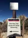 Plenty of parking available for cars and RVs and picnic tables. The hike begins near the restroom. Look for signs describing the vegetation, history, animals etc. The path was marked but in many areas it was unclear if we were going in the right direction, but just remember to notice signs or specific boulders or trees if you have to circle back. We did help 1 family find the path since they were not going the right way and they were beginning to panic.