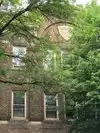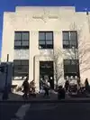 Near the library building.