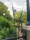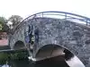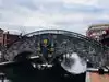 The walks on both sides of the canal are great for enjoying aquatic flowers (lotus, lilies,etc.), 3' long fish (bring stale bread), a Night Heron fishing under a bridge, little waterfalls, benches to rest on and large and smaller fountains, outdoor dining on sushi, Greek food, and other eateries, and above all, admire the trompe l'oeil paintings on the supports of the Community Bridge. Lots of other interesting bridges to keep small children happy too!