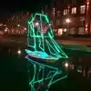 This area is used for events outside. Currently, there are ship displays in the water that are lit up at night which is nice to see. The water level is not very deep and koi fish are also in the water. Bridges are around the water area to traverse the water area. Lots of shops, restaurants and entertainment downtown.