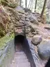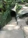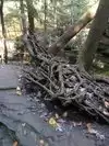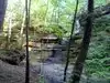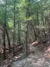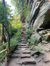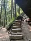 Our next hike after lunch was the newer trails, Hemlock Bridge Trail and the Whispering Caves trails. You start out at the Hemlock Bridge and the Whispering Caves veers off at that trail. It says it is moderate to difficult. I found it to be true. I was glad we had our backpack cooler filled with water with us. There are a lot of steep steps, narrow ways, and tree roots to step over. We did the Hemlock Bridge down to the bridge. You could easily skip the lower portion of this hike past the Whispering Cave since it's mostly level and hugs the creek; I'd go only if you want to see the bridge. It took us about two hours, but we stopped to take pictures (and rest) along the way. It's a difficult way down to start the hike and tiring (though less difficult oddly) going up. But it was a blast.
