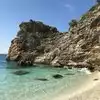 The beach is quite spacious and long, white sand, rental options for sun beds and umbrellas.
