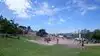 Very safe area with police on-site. I did not notice any restrooms available. There were a few street vendors selling fresh fruit cups.