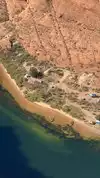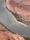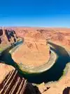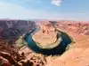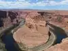 Parking (with dry toilets) for a small fee. You can only discover the "show" after 15 minutes of walking. (For your information, shelters exist during high heat). The emerald green Colorado River contrasts with the red cliffs. It's simply GRANDIOSE! Not to be missed.