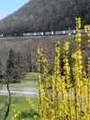 Even if you're not into trains you'll be impressed by this engineering feat that has lifted railroads over the mountain for nearly 170 years. Triple-tracked around the curve, it is possible to see 2 and 3 trains at a time squeal through the bend. The usual freight traffic is augmented by several daily Amtrak passenger trains. Pusher engines aid uphill loads and return light a short time later.