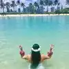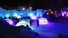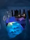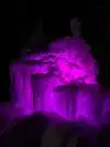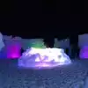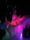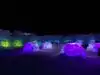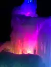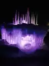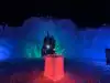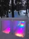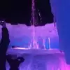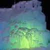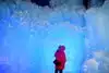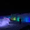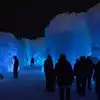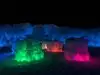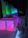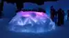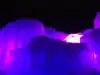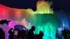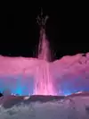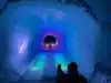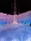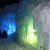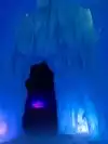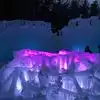 The colored lights add to the magic of the ice sculptures, walls and even a water fountain.