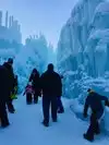 Small mound of ice, it can fit in your small backyard. Thought I was going to see acres of castles that are 30ft.-50ft. tall which is not the case at all. It takes about 10 minutes to walk through and that's all. They don't really go by your ticket time. You can go an hour early or an hour late. Just a few walk-through areas. Mostly everyone goes to get their photos taken in their "Fozen" movie Elsa dress. The parking is dirt and mud with ruts and divots so bring your SUV. Not worth going there though. Skip this venue and spend your money somewhere else. Extremely slippery, most visitor will fall once or twice. Small hayride which is another $20 per person. Porta potties are the bathrooms. There is a small sledding area with a 30-minute wait. No place to go inside to warm up and eat. Just an outdoor hot chocalote stand.