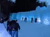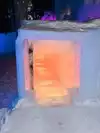 The entrance looks unassuming but behind it is a large maze of ice walls and arches. There are tunnels and cracks for kids to crawl through. Ice sculptures on a hill up above the main area. Ice chair to sit in and a fun fountain. Firepits to warm your hands. It is very pretty with the lights at night. Really cool looking slide but very long line so did not do that. Souvenir photo not interesting and expensive. We stayed an hour and enjoyed every minute.