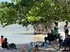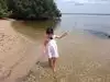 The beach is small, has trees for shade and the water is shallow. The sand is littered with twigs and leaves from the trees but if you put a beach blanket down it's not an issue. There's a beautiful sandy bottom once you are in the water. It's not the kind of beach that attracts young party crowds so it's great for kids.