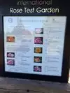 There is a kiosk on the upper-level promenade that includes an alphabetical listing of all the roses in the Garden along with a key to locate specific roses.