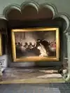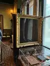 The ground floor has the breathtaking 4-story central atrium with glass skylights and beautiful plants and sculptures. Wonderful. The other rooms on this floor are largely as they were in her day, except that most of the furniture has been pushed back to the walls to allow visitors to walk through. Number of people in the room at one time is controlled by a staffer with a velvet rope. Even with that, it was VERY crowded and one has to maneuver carefully to get around. The rooms are not well lighted and it is VERY difficult to see much of the artwork because of this. There are no placards to identify the artwork or the artists; one is expected to scan a QR code and then look these up on one's phone. This is yet still another annoyance for those of us with lesser eyesight. There is a wonderful large Singer Sargent on the first floor. The second, third, and fourth floors are a bit more spacious, and entry is not controlled. Much of the artwork displayed here consists of altarpieces and medieval art, although there are a number of fine oil paintings on one floor (2nd?). Of course, there are also the five empty frames that mourn the loss of 13 masterpieces in a famous robbery., This included a Vermeer, 3 Rembrandts, a Flinct, a Manet, 5 Degas, a French bronze and a Chinese urn. It was sad to know these famous artworks have been missing since 1990, 33 years without a clue to their whereabouts.