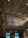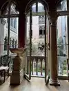 The ISG is a street-level two and a half block walk west from the BFAM. While the house itself is on the north end of Evans Way, the entrance is through a much more modern structure further south on that block. We had no trouble at all getting in, since we had pre-paid for entry at the 3 pm time-block, and we got there just before 3:30 pm. An excellent 10-page color room guide is provided with admission. There was a useful bag-check service near the entrance. One then passes through a long glass corridor to get to the Gardner house proper (or what the guidebook calls the "Palace").