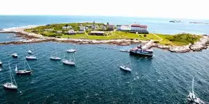 This cluster of islands can only be reached by boat. You can land on Star Island with a hotel & conference center, a chapel, several houses, tennis courts, hiking, seminars on a variety of subjects. There is a monument to John Smith who mapped the area in 1614.