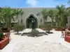 There is an old hotel with a long porch. I sat there and relaxed because I was unable to walk the unlevel walk ways around the small island. The other two went off with the map and enjoyed the buildings, cemetery, and other sites. Difficult for wheel chairs or limited for strollers.
