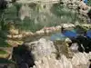 It was free. Near zoo. Limited free parking on site. No food service or refreshments available the day we visited. Public Water fountain was working. No signage for directions or information. Not sure if there were restrooms. There was restoration or maintenance going on with a building that maybe snack area or restrooms. Many steps, steep or rocky paths without many hand rails. Walkways over, around or near water feature maybe be challenging with children or unsteady folks. Take care. Some shade and a few benches.