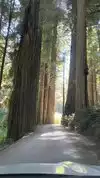 This road is unpaved, single lane with two-way traffic, bumpy and winds between enormous trees. Not for large vehicles!