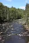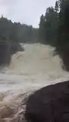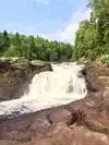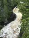 Anyway, the kettle is a place in the river where it splits, part of it as a waterfall, and the other part dives into a big hole. The water from that comes out in Lake Superior through an underground channel. There is only one convenient (and safe) location to see it well, so a lot of the photos will look alike.