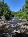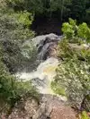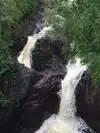 Great hike up the Brule river to the top of the waterfalls! The river splits in two, half tumbles 200 feet down the cliff, the other half goes into a cauldron, the "devil's kettle" to some where they have not been able to determine. LOTS of water. The sites at the campground are close and open, water spigots and vault toilets. Bear frequent the area.