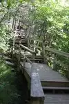 Really a pretty hike up through spruce and balsam forest to the falls, then the stairs begin. Lots of down, then some up and then the reverse, but it's all worth it for the rushing waters and great overlooks along the way.