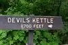 Devil's Kettle is a section of the river where, after going over a falls, part of the river "disappears" into a hole. It is accessible by a hike of just about a mile (one way), including ~200 stairs down to the river, followed by an additional climb back up to the Kettle. (Remember you'll be going UP those 200 stairs on the way out). But, the hike is a perfect North Woods experience, with views of the river, and pine forest. If it's wet, be careful on the stairs and boardwalk sections, as it's easy to slip.