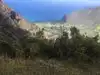 If the weather is on your side ( and if it isn't wait a little and it will probably clear) the view from 5100 feet down the valley to its end in 2000 ft cliffs is magnificent.