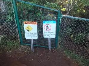Some people would consider this trail as "Extreme" hiking.This is for the adventurous people who are not scared of heights. Should be done on a sunny day when the trail is not slippery, and the views will be fantastic. It is relatively short but the first 1/4 mile is strenuous. Along with the Kalalau trail, this is the best hike on the Kauai island. Highly recommended if you know what you are doing. Avoid going there with small children as I could not imagine kids running around loose on this trail. The trail entrance is on the left side at the Kalalau lookout, there is a door so you do not need to go above or under the fence. Enjoy but be very careful, you can definitely harm yourself here.