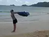 We brought way too much. Soft sided coolers are permitted, as are drinks in anything except glass. I recommend an insulated backpack, due to the long walks.