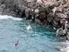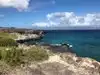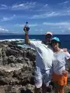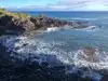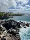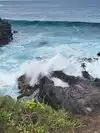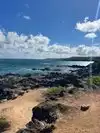 If you get a chance to walk this two mile trail in NW Maui, don't pass it up. The coastline is rugged and beautiful. There is a well worn path away from the trial to get to a rock-jumping ledge - one is about 10 feet and another 17 feet or so. You'll see many locals there if school is not in session. Our kids jumped from the lower platform and enjoyed the water.