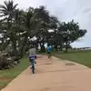 This is a fantastic path. It is shared by bikers, joggers, walkers and dog walkers. The views of the shoreline are breathtaking. We walked about 2 miles from Kapaa Beach Park north to another park and back. The path is 10 feet wide made of concrete and in great condition. There are historical information signs along the path to enhance your understanding of things that happened in the area. There were many path users all having a great time. There are also some picnic shelters along the way. We will return to walk on another part of the path at another time. A great experience for us.
