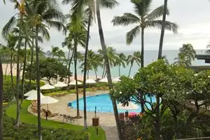 On the left side of the beach is a rocky outcropping with excellent snorkeling. On the right side of the beach the classic Mauna Kea Hotel is nestled into the rocks with the swath of beach chairs reserved for hotel residents. But their beachside restaurant invites anyone with the budget to dine there.
