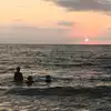 Hardly anyone in water here except for boogie boarders in Late November till February as Pacific Water is not calm this time of year.