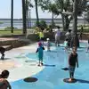 This park was a fun little park with a splash pad for the kid's to keep cool amd fun to walk around and see the water with fish and birds worth taking the family to have a nice break also has a small playground overall a very nice clean park to visit with a cool small lighthouse and proximity to food and entertainment.
