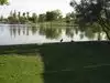 I visited Kiwanis Park in early morning on a July day when the temp would top out at 113F. As always, the park offered greenery and blue lake water in sharp morning light, and there was generous shade. This park has rolling hills and provides elevation for walkers and joggers in a city where we don't have many hills. The manmade lake is stocked for those wishing to take part in the Urban Fishing Program, and ducks make their home here. Picnic ramadas with tables and bbq grills are sprinkled throughout the park and available by reseravation. On weekends, Kiwanis is packed with people having parties, work get-togethers and family reunions. There's also room for tossing frisbies, and playground equipment and sports facilities are available closer to the Kiwanis Park Recreation Center at the south end of the park. Kiwanis is a joy to have in south Tempe! The parking lot is small, so best to get there early or go during the week. On weekends the streets along the park are lined with cars. Despite the parking crunch, everyone always seems to be having a good time at Kiwanis Park. Driving by it is a pleasure at any time of the day and year, especially for a winter or shoulder-season sunset or for views of the park lit up by sunbeams filtering through clouds. In summer it's just as welcoming in early morning or at sunset, but plan on sticking in the shade if you visit in the middle of the day. This park will make you vow to get out in nature more often.