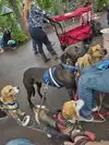 There are lots of trees for shade and places to sit. They are dog friendly. Lots of people had their dogs that were well mannered. There are designated places to smoke so people are walking all over the place smoking.
