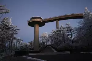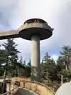 it's a tower on the Newfound Gap road, the trail is paved but it's rather steep, so there are some bench along the trail for people to take rest if needed. There are some information board on the tower, showing that what view you can see at that direction, however, there is always mist and cloud in smoky mountain, making it not very possible to see the view clearly, I don't think much good view or any impressive scenery can be seen there, but as the shape of the tower is quite special, so may be still worth to go there for once. There is also an information center/gift shop.