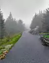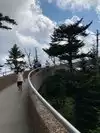 Even though I have a muscle disease that makes hiking difficult, I was determined to try the hike to Clingmans Dome and I made it!! This trail is paved and is a constant incline which gets steeper at the top. I even hiked on up to the top of the tower for some amazing views. The trail crosses the Appalachian Trail and there is an AT sign there that is a great photo must! My 83 year old mother has had a knee replacement and going back down the trail was more difficult for her. The edges of the trail are sloped a bit, so if possible walk toward the center for more level footing. If I can conquer this trail, anyone can even if at 50-75 step intervals as I did. There are benches to stop and rest along the way as well.