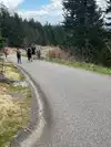 There were two small bear cubs in a tree on the way up. We watched until I realized in looking around that I was probably the slowest in the crowd. So we moved on. Where there are cubs there is a mama. Be aware.