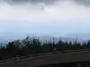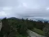 Down at the entrance to the park, it was around 100 degrees and sunny. As we went up the steep and windy road to get to Clingman's Dome, the fog and clouds were definitely visible.