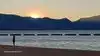 Lake Tahoe is a very beautiful lake. I went there at the end of September - the water was still very nice and warm. On the South side of the lake the water is very flat, on the North side it's deeper. The scenery is beautiful. I went on the beach to see a beautiful sunset. There were just a few people at the beach. In September most of the tourists are already gone but there are still many hotels and motels open. South Lake Tahoe also has McDonald's and other restaurants where you can have something to eat.