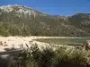 Approached from fallen leaf we followed a trail with lots of information along the way. The lake is huge with wide sandy shores. We were there midweek, early June, and there were lots of visitors enjoying the area.