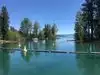 beautiful lake and very dog friendly area. The southern area we were at had a large sand bar that you could walk a long way into the lake before it got deep. The dogs loved it too and it got them very tired so the evening was more relaxing. The lake itself is beautiful with the mountains surrounding it. You get some great views of the lake from the hikes around it as well. We went in May and will definitely try to come back during ski season and the summer.