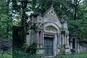 There is a chapel in the cemetery with an Art Deco interior completely designed and decorated by Tiffany; stain glass window, mosaic murals. The side walls are murals depicting rowers, one wall has dark-haired Romans and the opposite wall has blonde Greeks. One is Old Testament (dark) the other New Testament (enlightenment), and everybody is rowing towards Jesus in the window over the altar. Seriously, you must go see this.