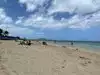 one of our favorite beaches. long white sand beach great for a long walk/run. beautiful warm water. can be very windy at times with rough surf. but on calm days its wonderful. full facilities, toilets, showers. plenty of trees for shade and picnic tables.