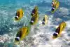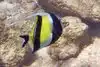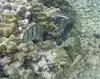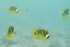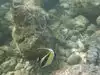 Oh man. I was in heaven. I swam in water about 8 feet deep that had amazing clarity I saw probably 30 - 40 different types of reef fish in less than an hour. In an area 10 feet by 10 feet you could see hundreds of fish. There were giant sized black and yellow Moorish Idols, masked Racoon Butterflyfish, needlelike blue Cornetfish, Blue Striped Butterfly Fish, brilliant turquoise fish that I think were Smalltrail Wrasse, 4-spot Butterfly Fish, the showy purple, orange and blue Saddle Wrasse, Yellowtail Wrasse, Whitespotted Puffers, striped Convict Tang and many other fish that I couldn't identify but were equally magical to watch.