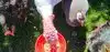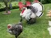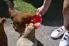 I went to feed the chickens after the shopping. There was no one at the chicken feeding table, but I helped myself to a small amount of the chicken food and delighted at the chickens and turkey pecking at it.