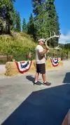 We walked to a covered pavilion and sat on benches for the fun, educational reindeer talk. The farm was created by a family in 2016 with 6 Alaskan reindeer. The mother who usually gives the talk was away on a well deserved vacation with her husband, and her daughter did an excellent job being funny, enthusiastic, and teaching us about reindeer, caribou, and the farm. As an adult with no kids, I thoroughly enjoyed the talk and being able to hold and touch reindeer antlers from a one to three year old. We received a safety briefing especially since it was "rutting season."