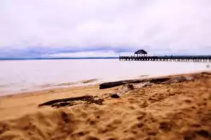 The three girls enjoyed putting their toes in the edge of the water, playing in the sand and the on the playground. The shoreline area was under restoration efforts. The long heavy rains took a toll on the beach area. We wanted to visit on a day when the Ranger area was open so we could check out an activity backpack. But we never seemed to be there at the right time. There is an area at the very back by the peer where some people were in the water. Be cautious the water is fast moving and dark. I was nervous letting my three little ones past their ankles.