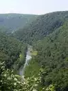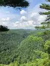 The State Park offers some good views into the Pine Creek gorge also known as the Grand Canyon of PA., Very nice entrance area with beautiful rhodendrum in bloom . The park offers some good views of the gorge and river below from the paved area. Also walked down the dirt West rim trail which is kind of steep for the last 50 yds. This could have been better marked for safety purposes.